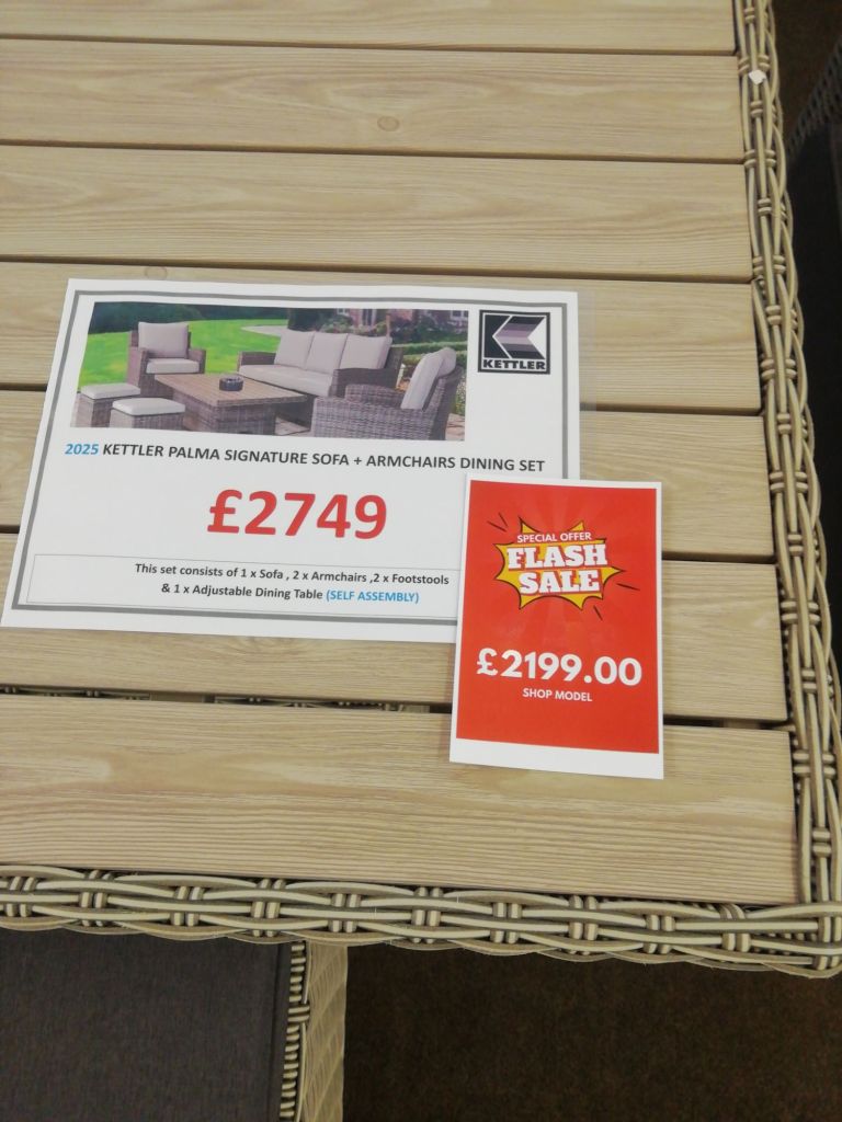 Kettler plama signature set 1 x sofa 2 x arm chairs 2x footstools Adjustable table Share this: Click to share on X (Opens in new window) X Click to share on Facebook (Opens in new window) Facebook More Click to print (Opens in new window) Print Click to email a link to a friend (Opens in new window) Email Click to share on Pinterest (Opens in new window) Pinterest Click to share on WhatsApp (Opens in new window) WhatsApp Like Loading... Related